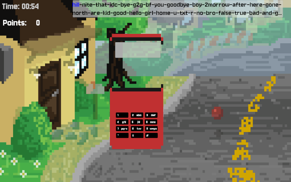 It is a typing game using an old nokia-style phone, multiple presses are needed to cycle between letters