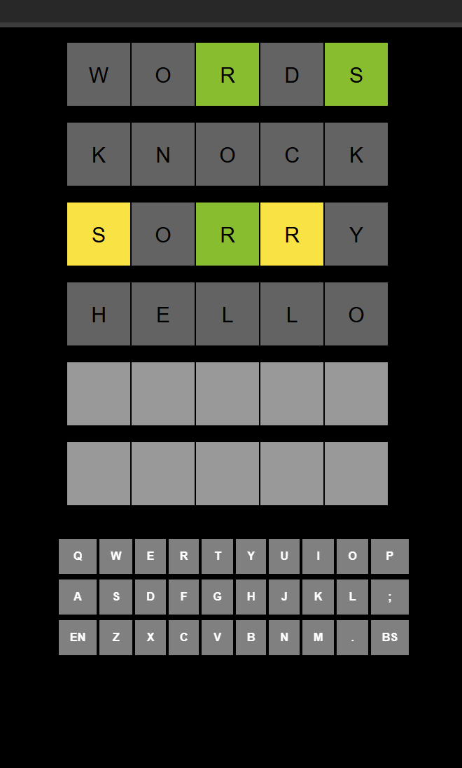 If you try to input a non 5 letter word, you will see a wiggle animation, as only "real" 5 letter words are allowed (like in the normal Wordle)
